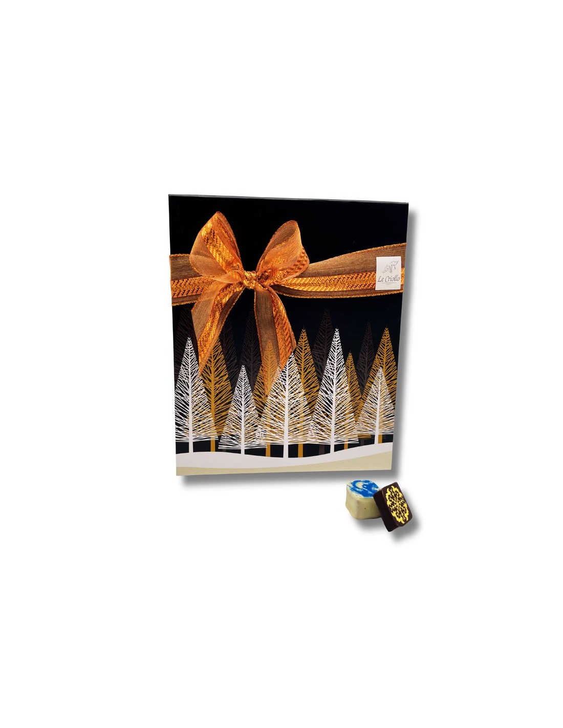 Chocolats d’enrobage « Pur beurre de cacao » chocolat au lait (cacao 31,5% minimum) : sucre, beurre de cacao, poudre de lait entier, pâte de cacao, émulsifiant : lécithine de soja non OGM, arôme vanille naturelle ; chocolat noir (cacao 73% mini) ; chocolat blanc . Intérieurs : pâte d’amandes (amandes, sucre) ; pâte d’amandes à la pistache (sucre, amandes, pistaches) ; pâte de noix (cerneau de noix, sucre inverti, beurre de cacao, sorbitol) ; noisettes, amandes, cacahuètes, purées de cassis, framboise, ananas, fraise, fruit de la passion, figues ; croustillant (farine de blé, sucre, matière grasse de lait anhydre, lactosérum en poudre, sel, extrait de malt d’orge, poudre à lever (carbonate acide de sodium) ; riz soufflé caramélisé (farine de riz, sucre) ; chocolat au lait au caramel ; gingembre confit (sulfite de sodium) ; crème UHT (crème de lait, stabilisant : carraghénanes, émulsifiants E472B ; écorces d'oranges confites ; noix de coco râpée ; éclats de fèves de cacao ; thym ; beurre salé aux cristaux de sel de Guérande ; beurre laitier ; épices ; concentré d'orange et de citron, vanille ; cannelle ; café ; miel ; curry ; arôme naturel de cèpes ; huiles essentielles de menthe ; graines de pavot ; arômes ; colorants alimentaires naturels ; stabilisant : sorbitol ; conservateurs : sucre inverti, sirop de glucose, acidifiant : acide citrique.